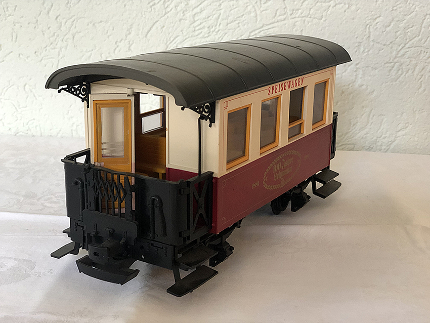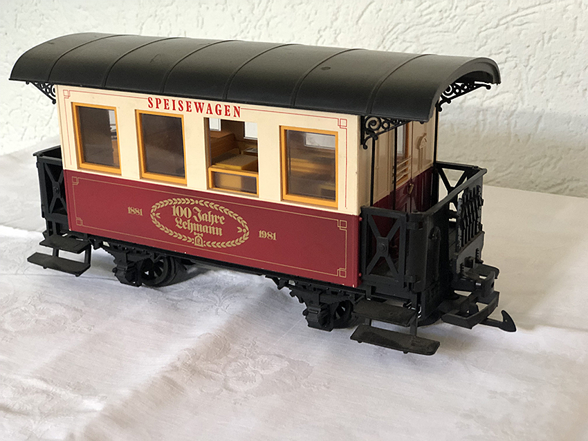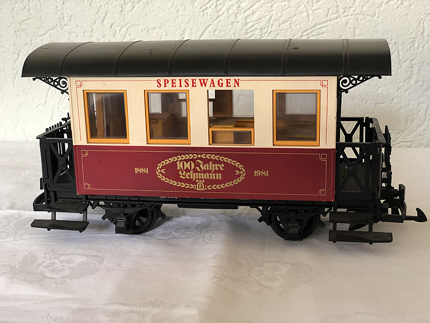 LGB "100 Jahre Lehmann" Speisewagen mit Metallrädern.
